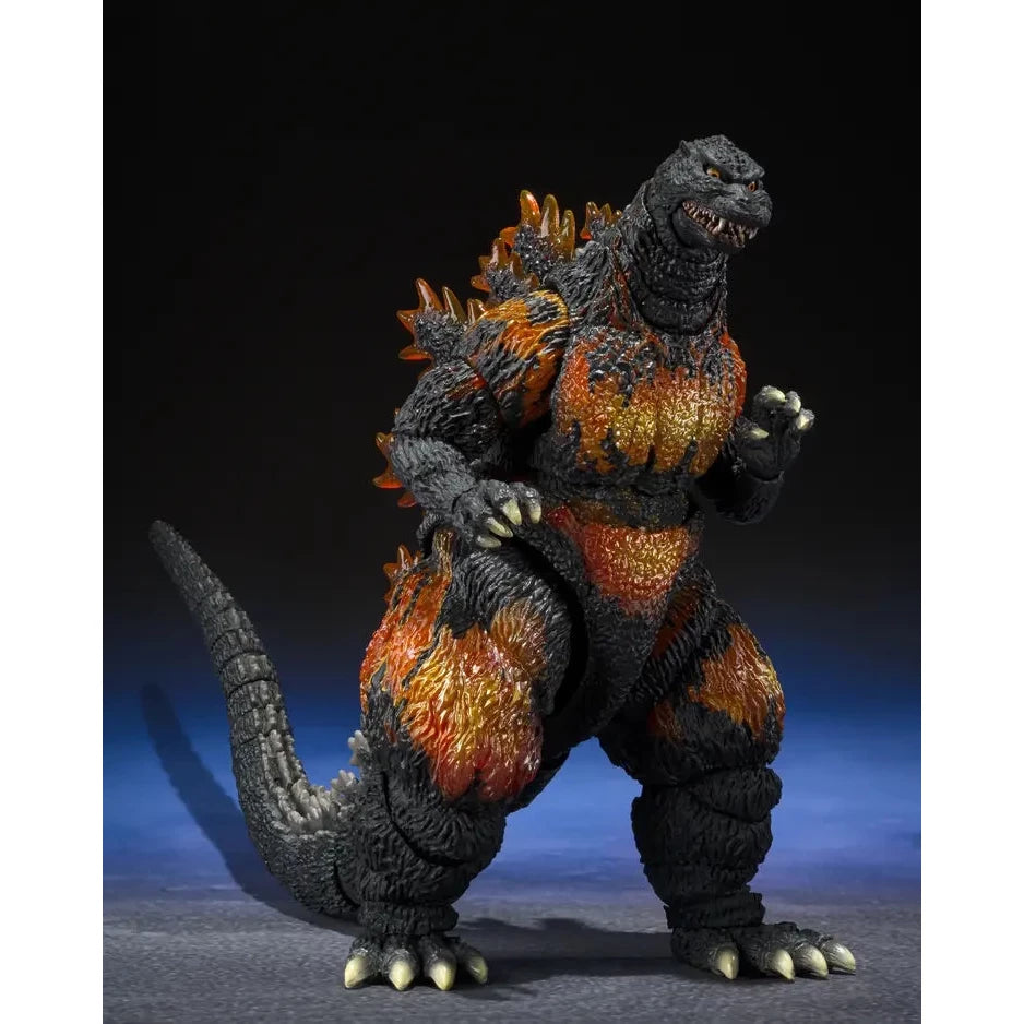 To celebrate Godzilla's 70th anniversary, GODZILLA [1995] storms back into S.H.MonsterArts for the 30th anniversary of "Godzilla vs. Destoroyah," making 2025 the year of the Burning Godzilla! Prototype, coloring, and modeling produced by Yuji Sakai, a leading expert on Godzilla modeling. Coloring was adjusted based on images from the movie. In addition to the radiant heat ray effect parts, the "Godzilla 70th Anniversary Logo Pedestal" is also included with new coloring!