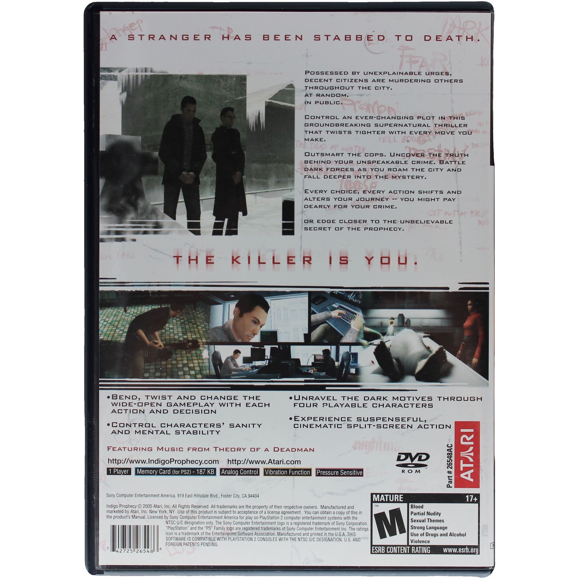 Indigo Prophecy for the Sony PlayStation 2 (PS2).