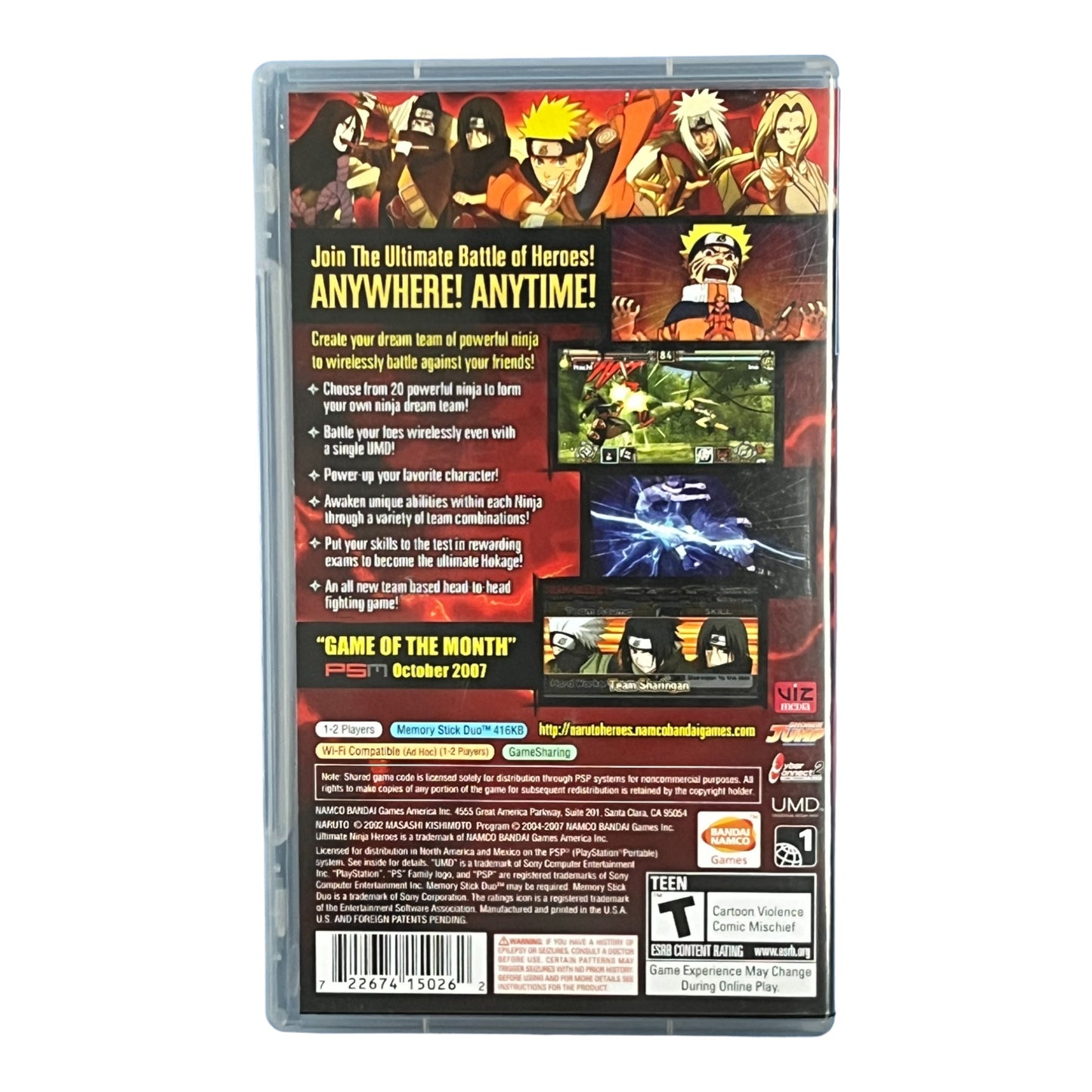 Naruto Ultimate Ninja Heroes for the Sony PlayStation Portable (PSP).