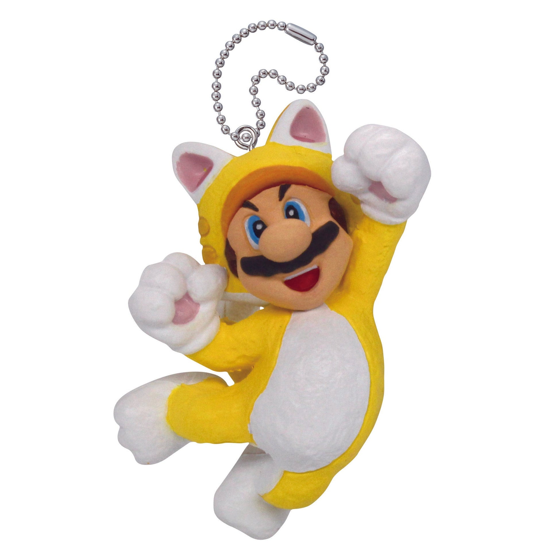 Paws-itively adorable fan favorites from Super Mario 3D World! Each dangler key chain measures approximately 1 1/2-inches tall and comes packaged in a blind capsule (gachapon) that adds an element of surprise. There are six characters to collect in all! The Super Mario 3D World Includes 1 random individual blind capsule key chains.